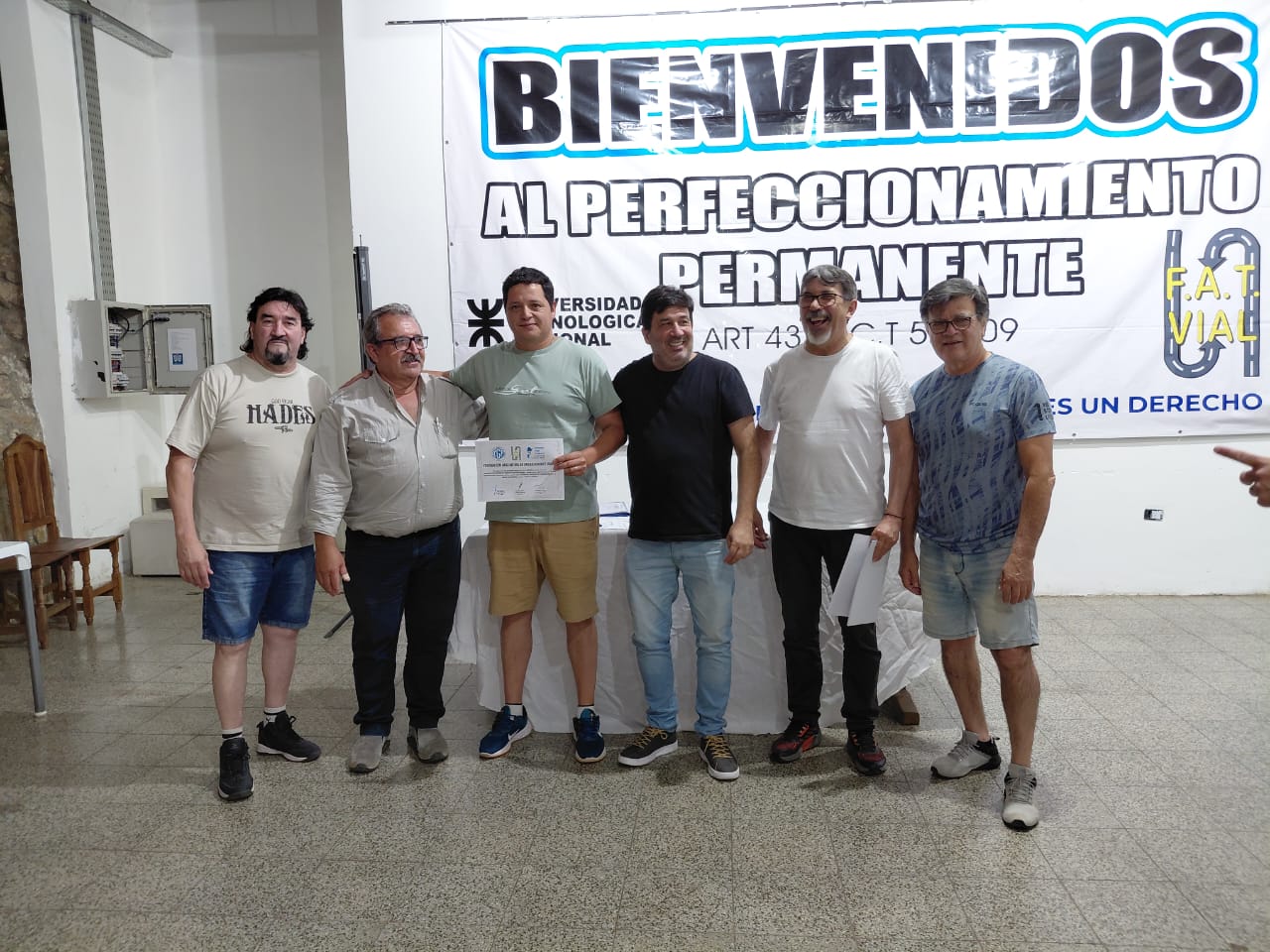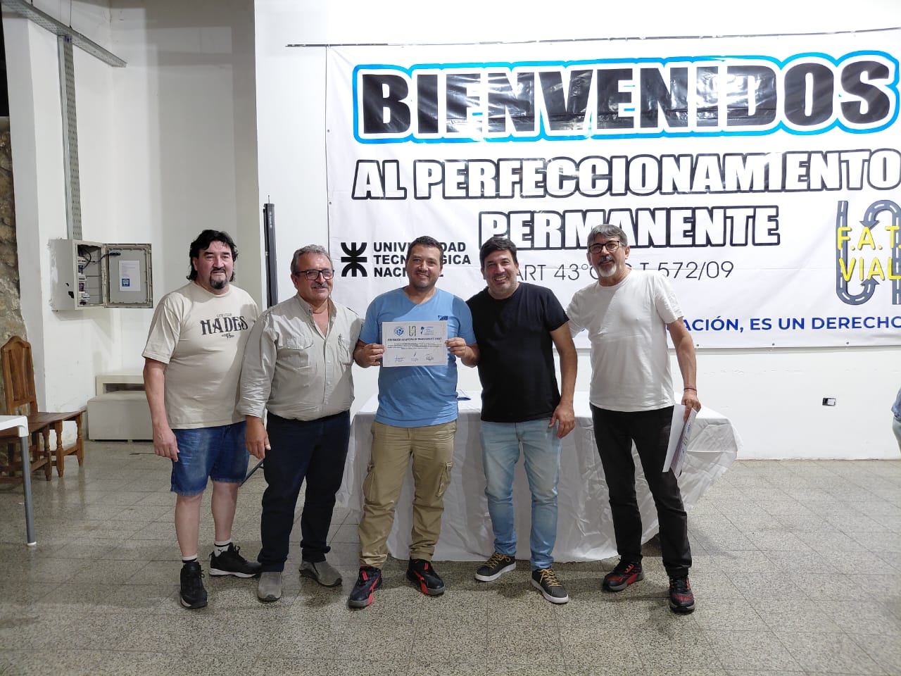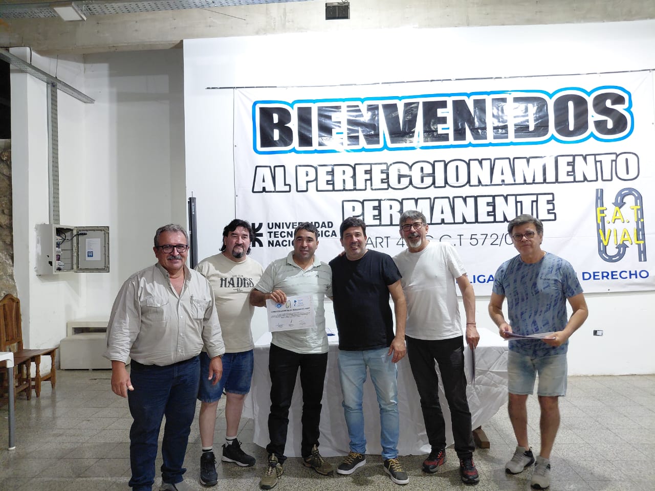 El viernes 19 culminó el Curso de Operador Especializado en Motoniveladora, organizado por la FAT Vial y certificado por la UTN, con una jornada de cierre y entrega de certificados a los participantes.